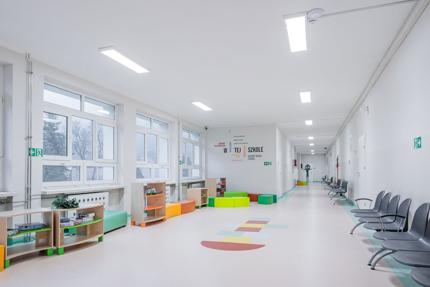 Automatyzacja pracy opraw i możliwość programowania ich działania pozwalają placówce efektywnie zarządzać energią i kosztami, a jednocześnie tworzyć komfortowe warunki o każdej porze dnia. To rozwiązania, które realnie wspierają codzienne funkcjonowanie szkoły i jej użytkowników.