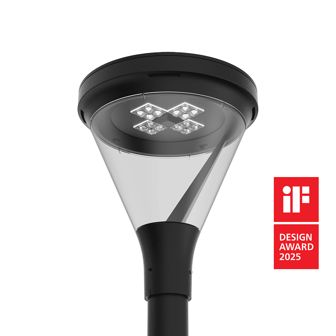 Skver LED S (L) to nowa generacja opraw parkowo-miejskich LED. Wykorzystuje kierunkowe matryce wielosoczewkowe, wykonane z PMMA, z których każda soczewka posiada taką samą optykę, zapewniając niezmienność charakterystyki świetlnej w czasie. Konstrukcja zapewnia utrzymanie szczelności komory wewnętrznej oprawy. W standardzie, oprawa oferuje beznarzędziowy dostęp do osprzętu elektrycznego przy użyciu dwóch niezależnych pokręteł, które, na życzenie i potrzeby ochrony przed wandalizmem lub niekontrolowanym otwarciem, można opcjonalnie trwale zabezpieczyć śrubami. Górna część oprawy, posiada dedykowany zawias. Oprawa umożliwia wymianę zintegrowanego wewnętrznego modułu zasilającego/świetlnego (wykonanego w zgodzie ze standardami ZhagaBook 13 i ZhagaBook 15) bez użycia narzędzi, możliwy jest szybki i wygodny serwis, pozwalający na wymianę jednego zintegrowanego komponentu bez konieczności demontażu całej oprawy i wykonywania połączeń lutowanych lub skręcanych. Nie ma konieczności wykonywania prac serwisowych w miejscu instalacji. Wystarczy wymienić moduł na zapasowy (akcesorium) zamknąć oprawę a prace serwisowe następnie wykonać w miejscu serwisowym: w placówce właściciela oprawy lub odesłać do serwisu producenta. Korpus i uchwyt wykonany z ciśnieniowego odlewu aluminium, malowany proszkowo na kolor czarny, charakteryzuje się bardzo wysokim stopniem szczelności IP66 oraz odpornością na udary mechaniczne IK10. Certyfikaty: CE, RoHS, ENEC, ENEC+, Zhaga-D4i