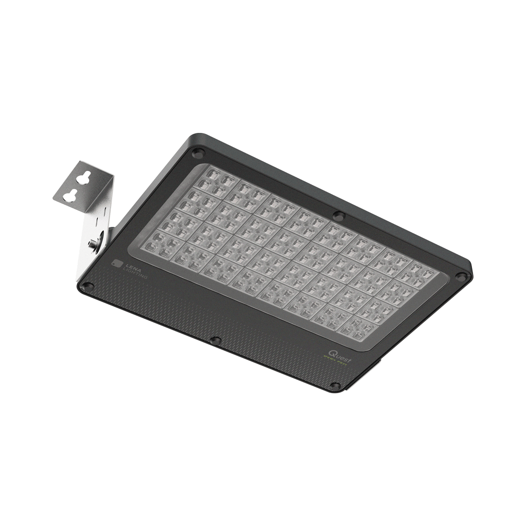Quest LED EVO L, ich wersje typu high-bay: natynkowe Quest LED EVO L HB NT oraz zwieszane Quest LED EVO L HB Z to niezwykle wydajne naświetlacze i HB klasy premium, produkowane w Polsce. Ich korpus wykonany jest z ciśnieniowego odlewu aluminium, malowany proszkowo, bez zewnętrznego radiatora i żeber utrudniających utrzymanie w czystości. Klosz stanowi szyba hartowana, pod którą znajdują się diody LED o najwyższej wydajności. Różne rodzaje optyk, szczególnie asymetrycznych, zapewniają dużą swobodę w doborze pod konkretne rozwiązanie. Dzięki najwyższej na rynku szczelności (IP67) i maksymalnej odporności na uderzenia (IK10), naświetlacze sprawdzą się w każdych warunkach – niezależnie od pogody i miejsca montażu. Nowa wersja uznanego i sprawdzonego modelu QUEST oferuje jeszcze lepsze parametry świetlne, osiągając skuteczność przekraczającą 170 lm/W. Quest LED EVO L spełnia wymagania normy PN-EN 60598-2 cz.5, co pozwala na klasyfikację jako projektory iluminacyjne, umożliwiając pełną swobodę montażu w dowolnej pozycji, z możliwością obrotu o 360° i odpornością na silny wiatr. Dodatkowym atutem dla wykonawców jest szczelna szybkozłączka – innowacyjne rozwiązanie eliminujące tradycyjne, czasochłonne metody łączenia. Dzięki intuicyjnemu systemowi kolorowych zapadek montaż złącza staje się prosty, szybki i beznarzędziowy. Wersja HB NT jest przeznaczona do montażu natynkowego jako highbay za pomocą dedykowanych uchwytów. Wersja HB Z przeznaczona jest do zwieszania. Zestaw akcesoriów obejmuje uchwyty do montażu na słupie, ramkę do montażu podtynkowego (np. wiaty), przesłony ograniczające zanieczyszczenie światłem oraz siatki ochronne w dwóch kolorach o różnym stopniu redukcji światła (biała RAL7016: 4%, w kolorze korpusu RAL7016: 8%). Modele można wyposażyć w zewnętrzny czujnik ruchu i zmierzchu. Występują również w wersji ENDURA, odpornej na podwyższone temperatury otoczenia do 50°C. W ofercie występują również wersje dwumodułowe o zwiększonym strumieniu i mocy. Dostępne są wersje DALI (w przypadku luki w konkretnej mocy w ofercie z zasilaczem DALI, sprawdzić wersje ENDURA DALI).