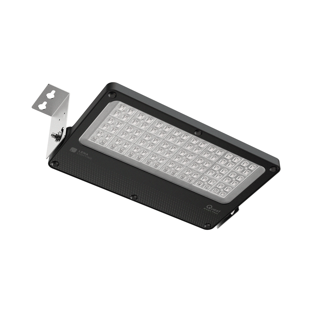 Odmiana Endura opraw Quest LED EVO M, ich wersji typu high-bay: natynkowych Quest LED EVO M HB NT oraz zwieszanych Quest LED EVO M HB Z to niezwykle wydajne naświetlacze klasy premium, produkowane w Polsce, przystosowane do pracy w wysokich temperaturach (do 50 stopni C). Korpus wykonany z ciśnieniowego odlewu aluminium, malowany proszkowo, bez zewnętrznego radiatora i żeber utrudniających utrzymanie w czystości. Podstawowa wersja posiada ramię stalowe z podziałką co 7,5 stopnia, natomiast wersja highbay endura (HB NT) występuje w formie natynkowej i zwieszanej (HB Z). Klosz stanowi szyba hartowana, pod którą znajdują się diody LED o najwyższej wydajności. Różne rodzaje optyk, szczególnie asymetrycznych, zapewniają dużą swobodę w doborze pod konkretne rozwiązanie. Dzięki najwyższej na rynku szczelności (IP67) i maksymalnej odporności na uderzenia (IK10), sprawdzi się w każdych warunkach – niezależnie od pogody i miejsca montażu. Nowa wersja uznanego i sprawdzonego modelu QUEST w najmniejszej odsłonie oferuje jeszcze lepsze parametry świetlne, osiągając skuteczność przekraczającą 170 lm/W. Odmiana Endura również spełnia wymagania normy PN-EN 60598-2 cz.5, co pozwala na ich klasyfikację jako projektory iluminacyjne. Oznacza to pełną swobodę montażu w dowolnej pozycji, z możliwością obrotu o 360° i odpornością na silny wiatr – przewaga, której nie oferują pozostałe naświetlacze. Dodatkowym atutem dla wykonawców jest szczelna szybkozłączka – innowacyjne rozwiązanie eliminujące tradycyjne, czasochłonne metody łączenia (na śrubki). Dzięki intuicyjnemu systemowi kolorowych zapadek montaż złącza staje się prosty, szybki i beznarzędziowy. Zestaw akcesoriów obejmuje: uchwyty do montażu na słupie (wersja podstawowa); ramkę do montażu podtynkowego, np. wiaty (wersja podstawowa); przesłony ograniczające zanieczyszczenie światłem (wersja podstawowa); siatki ochronne w dwóch kolorach o różnym stopniu redukcji światła (biała RAL7016: 4%, w kolorze korpusu RAL7016: 8%). Modele można wyposażyć w zewnętrzny czujnik ruchu i zmierzchu.