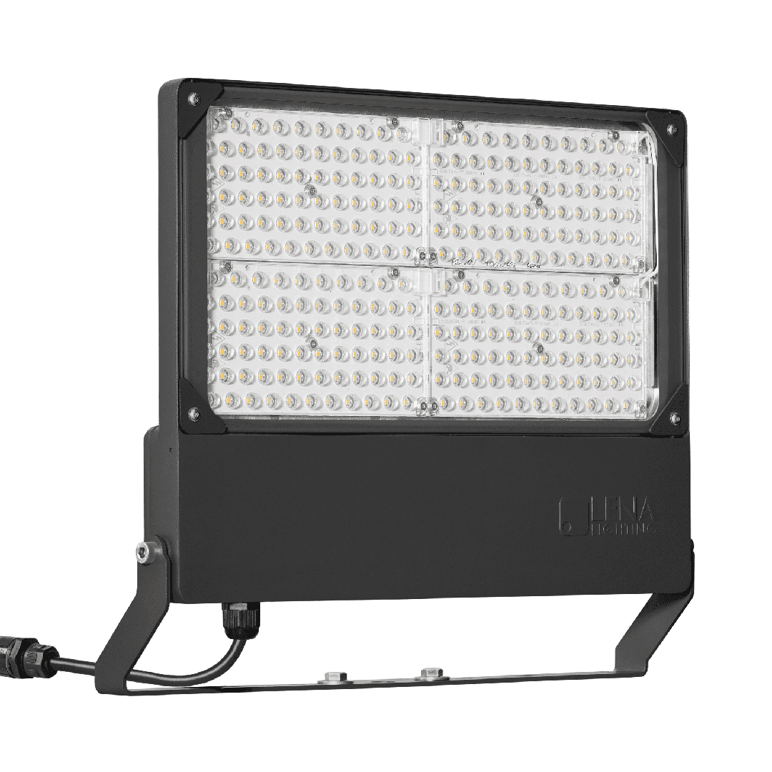 Wysokiej jakości naświetlacz z wbudowanym źródłem LED. Korpus wykonany z ciśnieniowego odlewu aluminium, malowany proszkowo na kolor szary antracytowy (RAL 7016) a uchwyt montażowy ze stali malowanej na kolor czarny. Klosz stanowi szyba hartowana o grubości 5mm. Wyposażony został w matryce soczewkowe o 3 różnych rozsyłach światła: symetryczny (120 st.), asymetryczny wąski ASN i asymetryczny szeroki ASW. Uchwyt montażowy, odporny na korozję, z możliwością regulacji w zakresie od -140° do +185°. Lampa dostępna w 2 wersjach wymiarów: M i L. Standardowo wyposażona w przewód H07RN-F o długości 0.1m i szybkozłącze IP66. Dostępny szeroki zakres akcesoriów: siatka ochronna, uchwyt na słup; uchwyt naścienny.