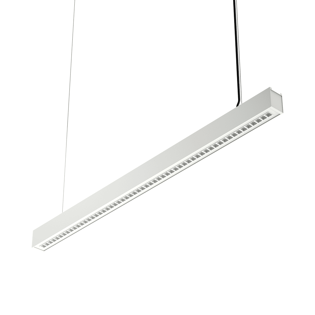 Baris 52 LED UGR Plus Single to elegancka, energooszczędna oprawa liniowa LED o minimalistycznym designie i optyce UGR<19, zapewniająca komfortowe, równomierne oświetlenie w nowoczesnych przestrzeniach biurowych i komercyjnych.
