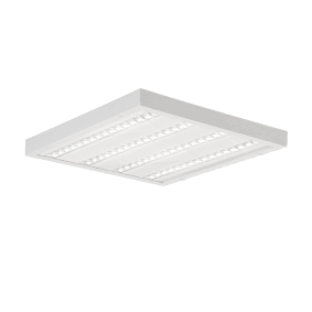 Front oprawy wykonany jest z aluminium oraz hartowanego szkła o grubości 4 mm, odpornego na uderzenia (klasa IK09) oraz działanie środków chemicznych. System modułowych przesłon (Glass / Opal / PRM) pozwala na dobór odpowiedniej charakterystyki optycznej w zależności od wymagań aplikacji — od jednolitego, rozproszonego światła po precyzyjne rozsyły kierunkowe. Wersja SM przeznaczona do montażu w sufitach modułowych.
